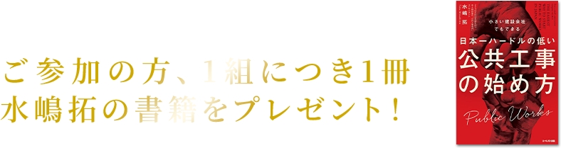 しかし、中小建設会社のための公共工事研究会では、延べ450社以上の建設会社へアドバイスを行い、経営に悩みを抱える中小の建設会社を次々と羽ばたかせてきた主宰の水嶋のノウハウを惜しみなく伝えます。