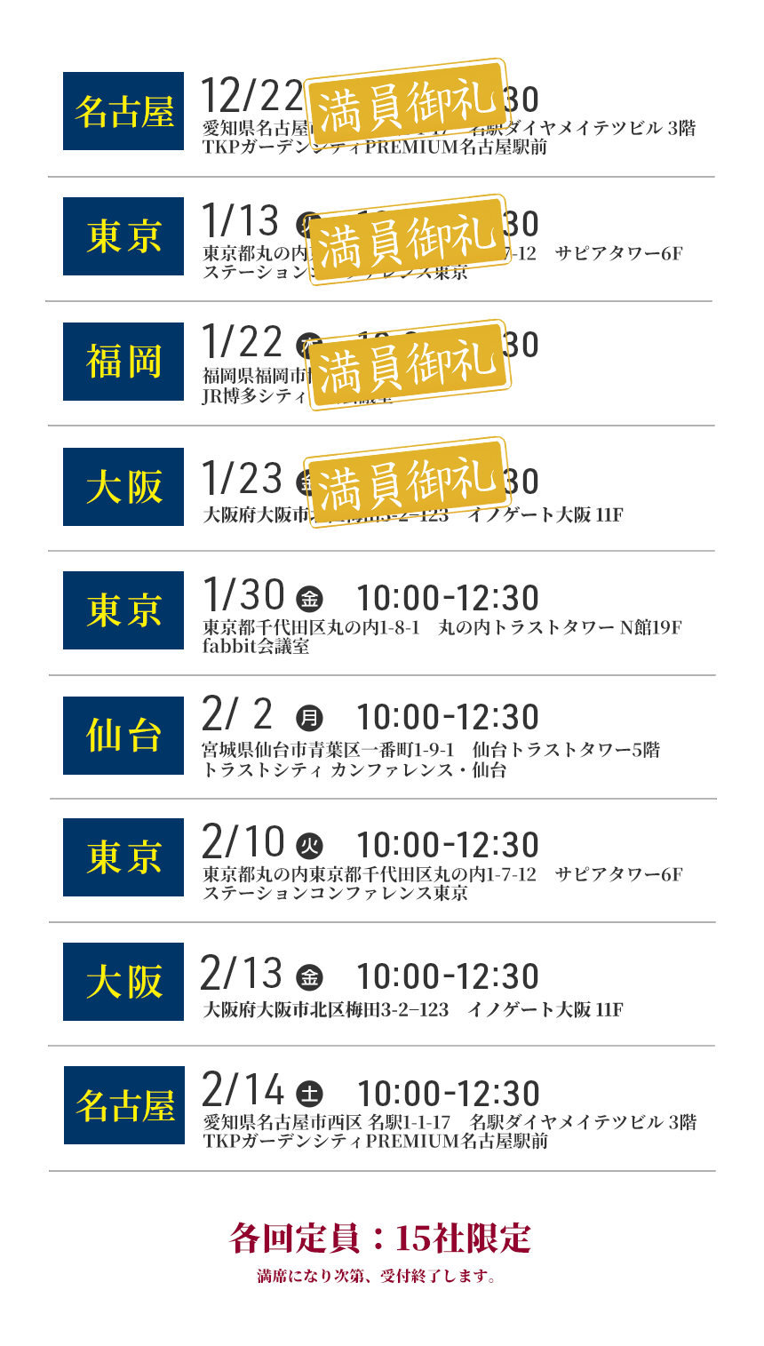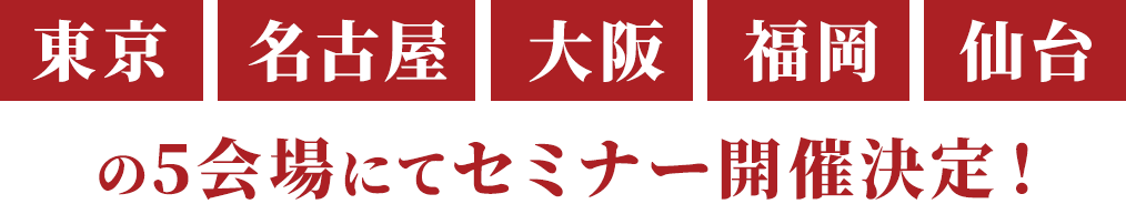 東京・名古屋・大阪・福岡・仙台での