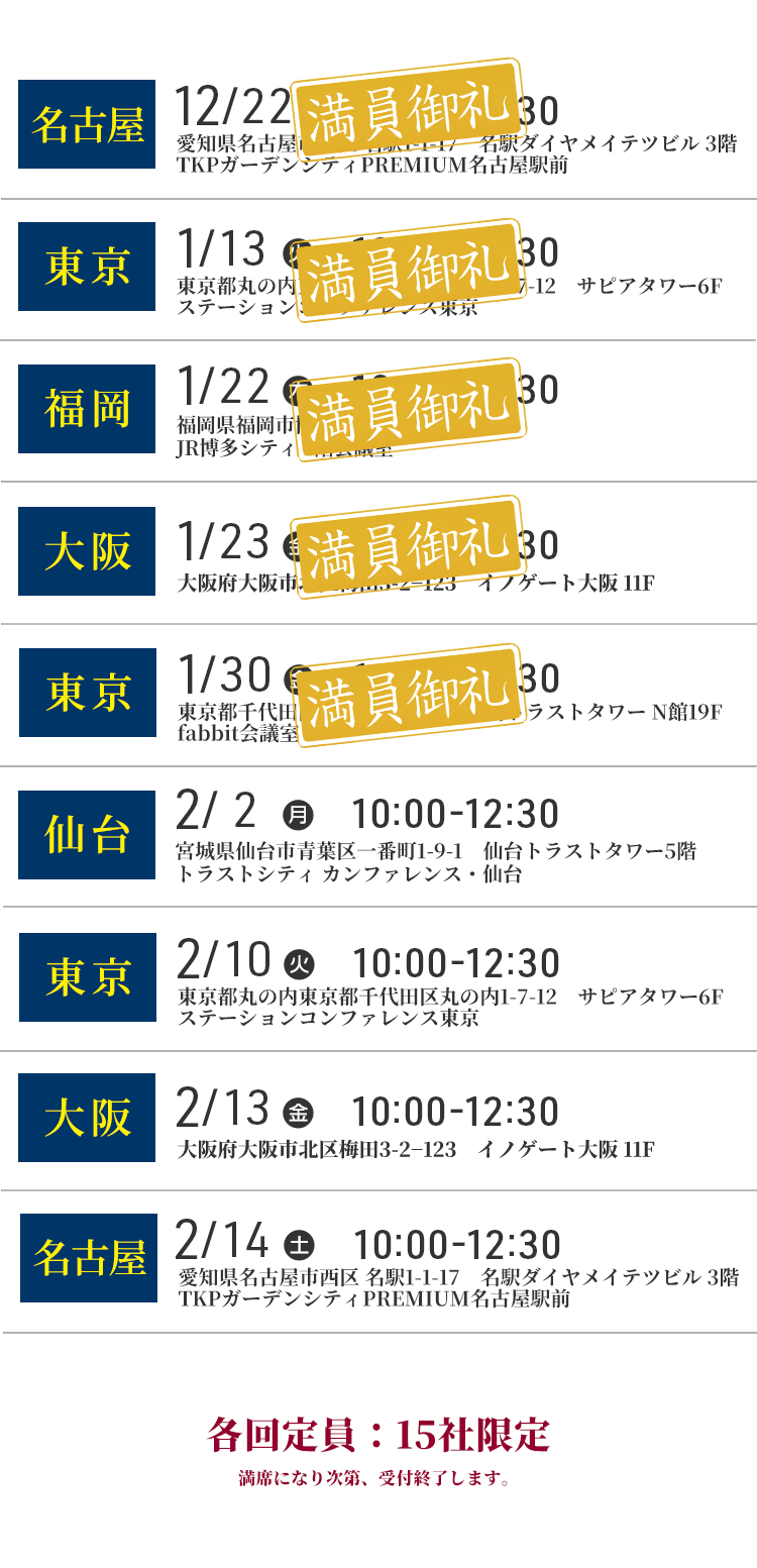 これまで限られた会員様にしか共有してこなかった内容も含め、「新しい戦略の考え方」や「仕組みのつくり方」を、事例とともにお話しする予定です。
